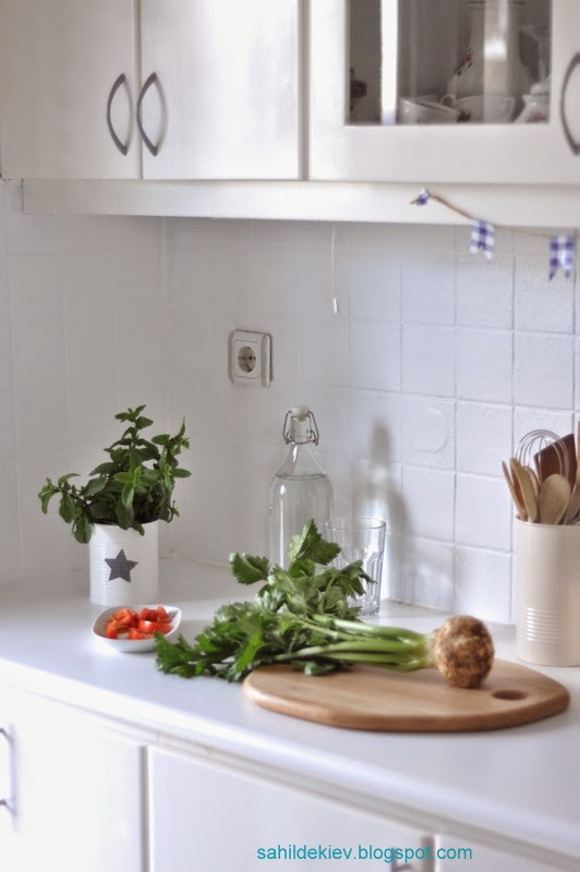 For a long time, I was wishing to paint the tiles of my kitchen to white.. Finally we made it and it turned out quite an easy job and I am very happy with the outcome.... Constructors are still working in our home, so as soon as they leave, I will share more photo..