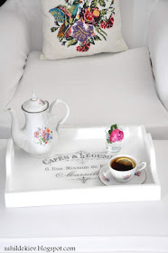 Daha sonra siparişleri vermenin dayanılmaz hafifliği ile güne başladım..Bu sıralar transfer tekniğine kafayı takmış durumdayım..Yere göğe transfer yapma projelerim var, ama hep böyle olur kısa süre sonra dikkatim başka yöne kayar ve 3-5 parça ile kalırım..Bu tepsinin de bu sabah son verniğini atar atmaz hemen bir çay koyup fotoğrafladım..Çok iyi olmadı ama ilk çalışma için fena olmadı deyip kendimi avuttum....Asıl büyük çalışmamı her halde ancak haftaya bitirebileceğim...Sonucu bende merak ediyorum bakalım nasıl olacak..